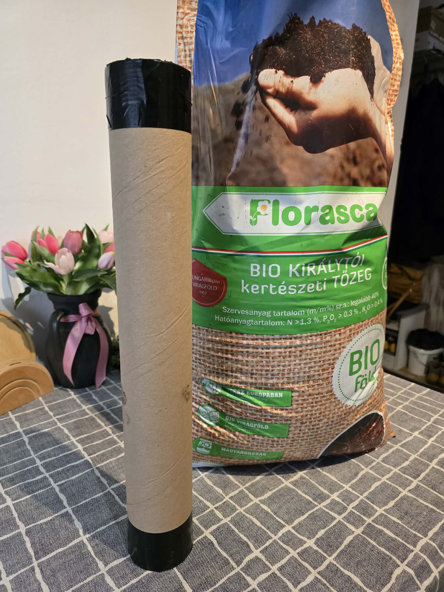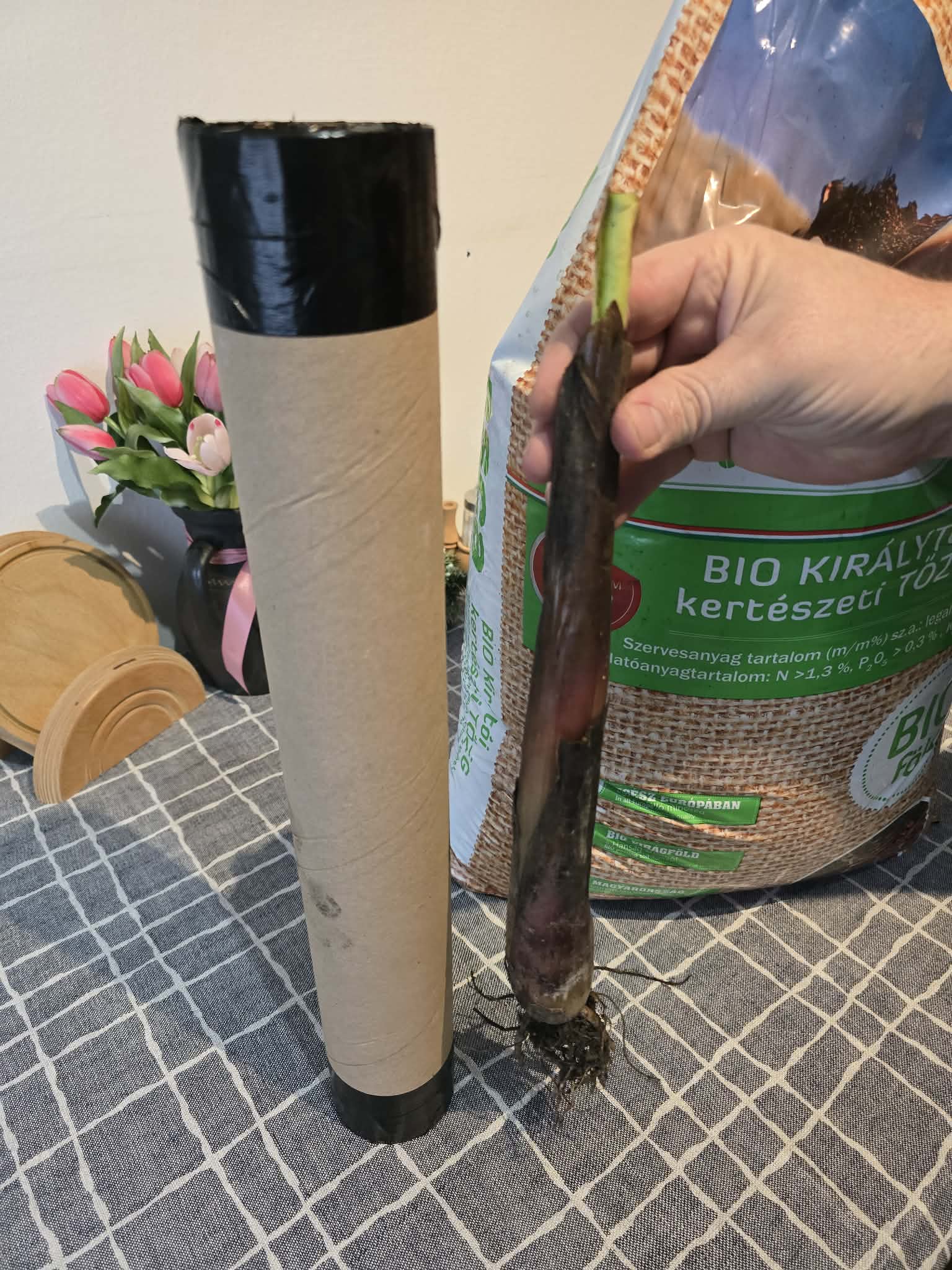 A papír henger másik oldalát is lezárjuk, s így már biztonságosan szállítható. A kisebbik (max 65–70 mm átmérőjű növény) súlya így csomagolva másfél kg körül alakul.