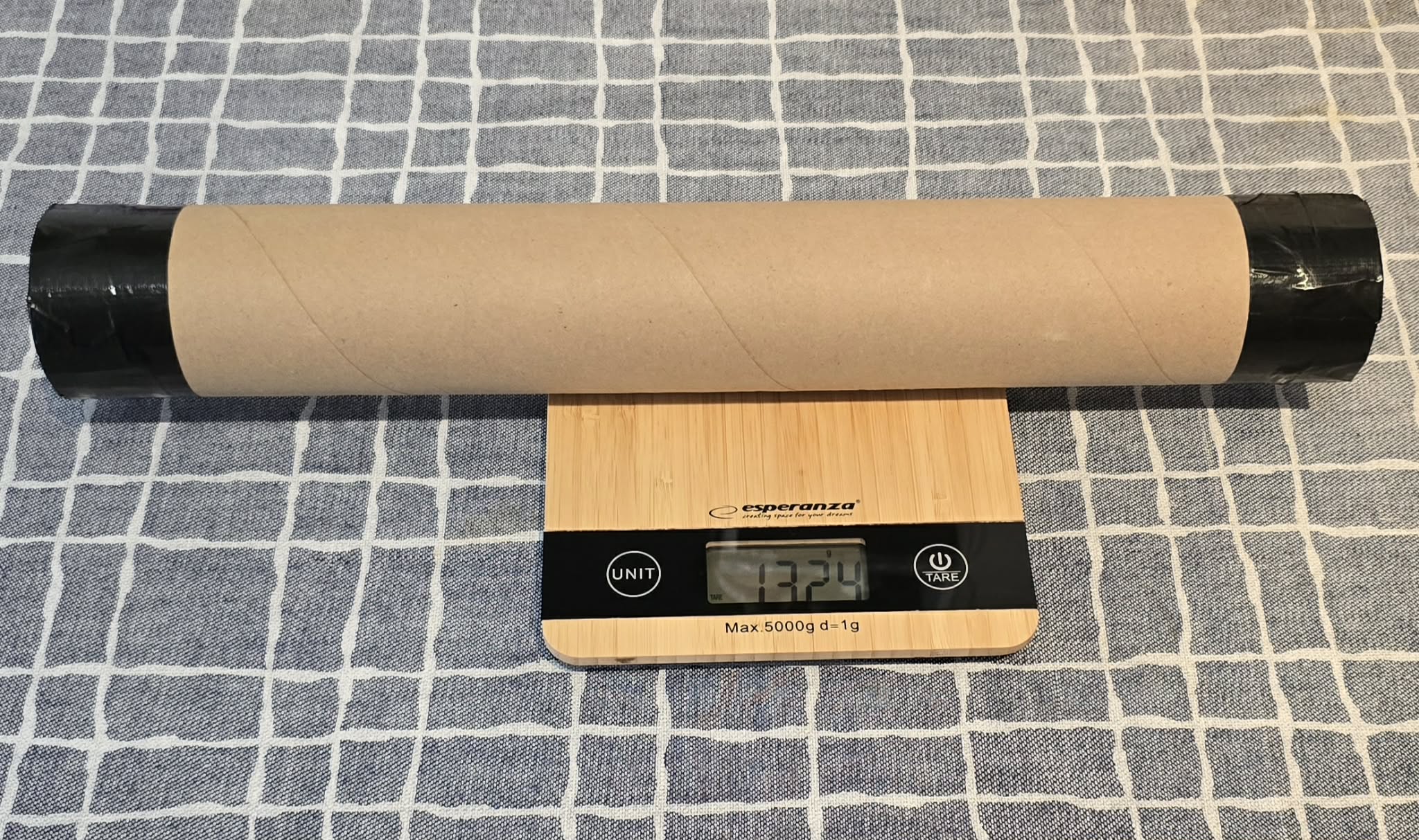 50 cm hosszú és 7,5 cm átmérőjű papír hengerben kerül feladásra, a csomag súlya pedig kb 1,5 kg