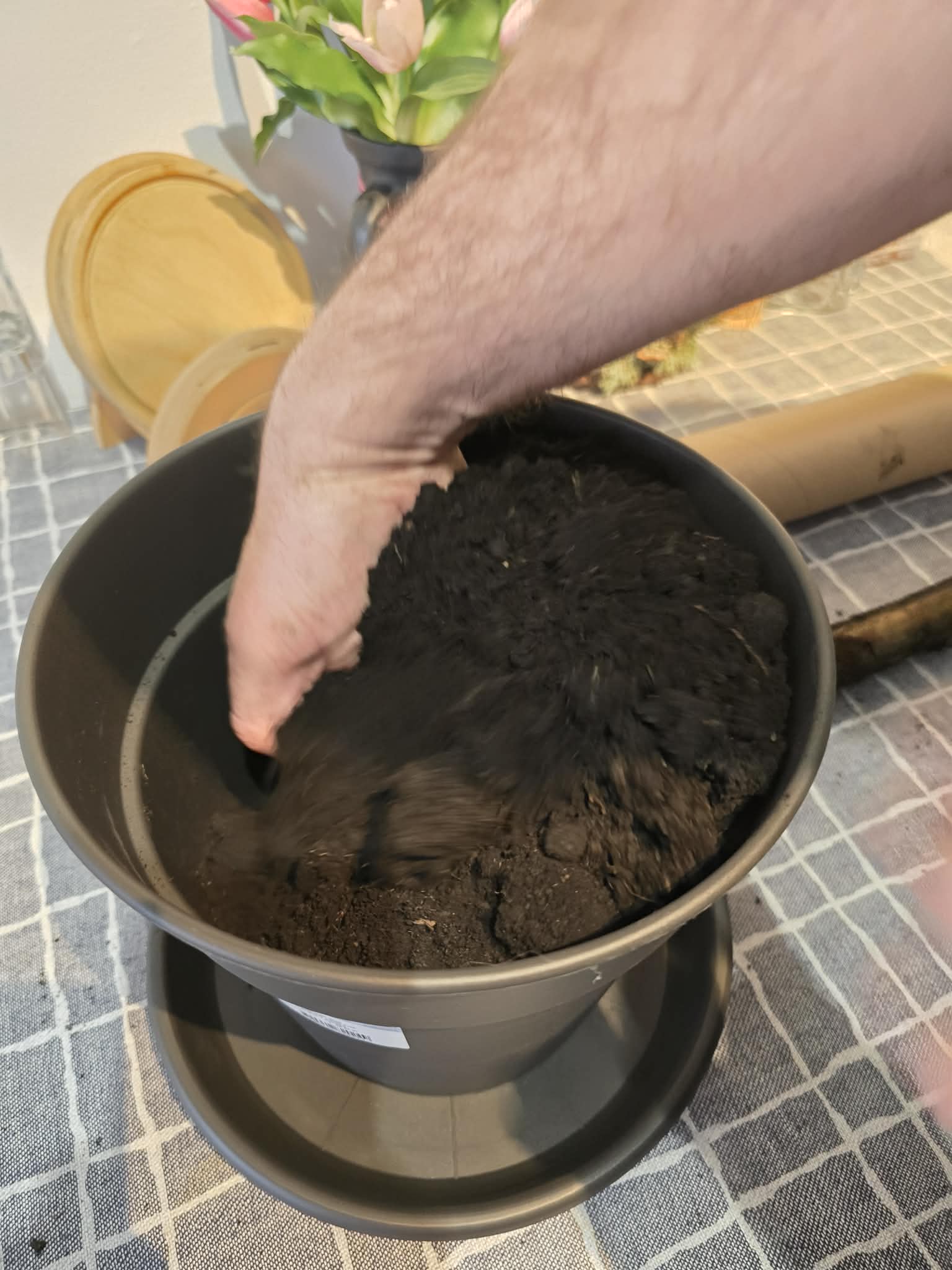 A tőzeget és a virágföldet keverjük össze.