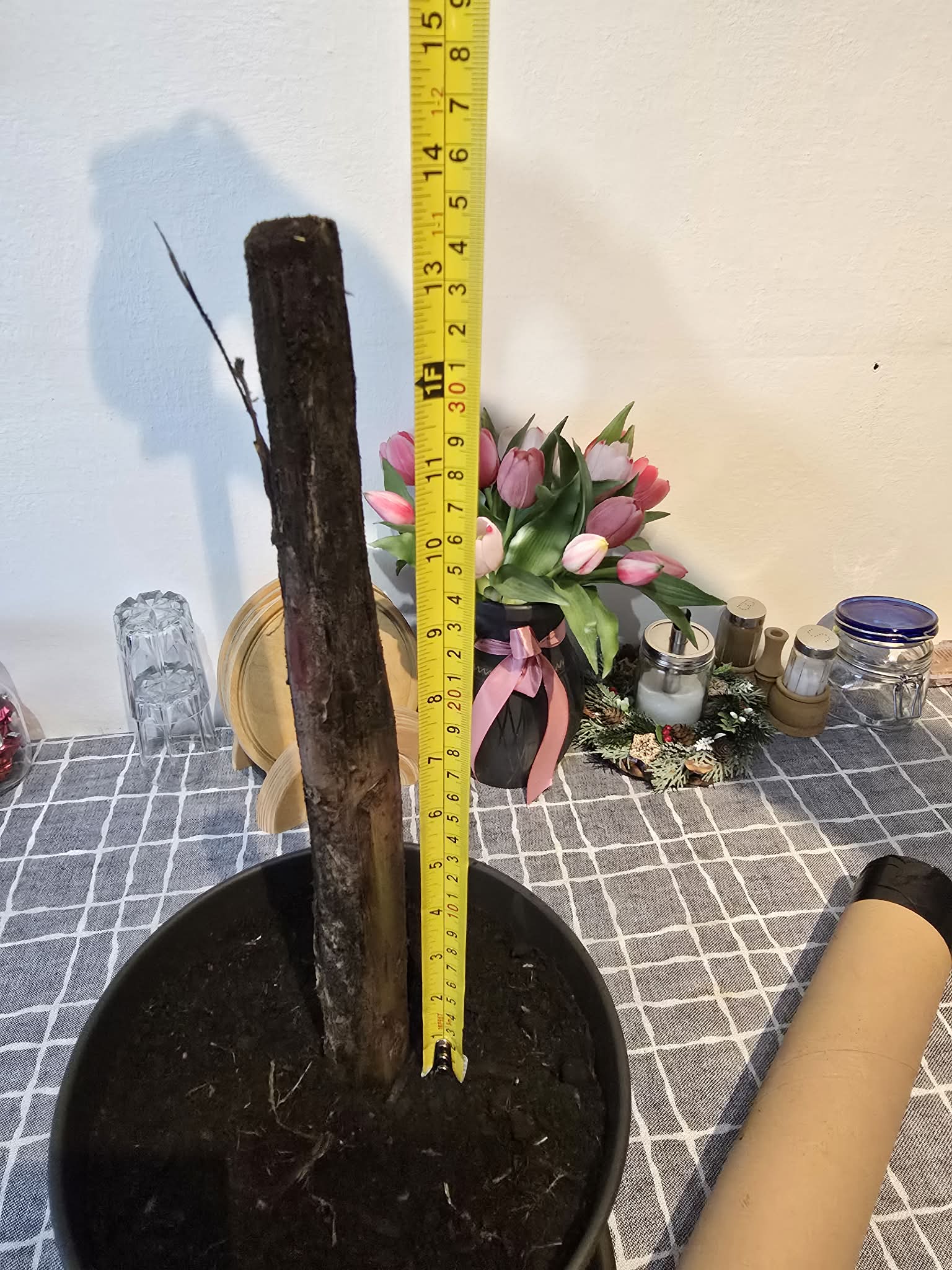 A 45 cm hosszú növény 10 cm mélyen került elültetésre, így 35 cm-re áll ki a földből.